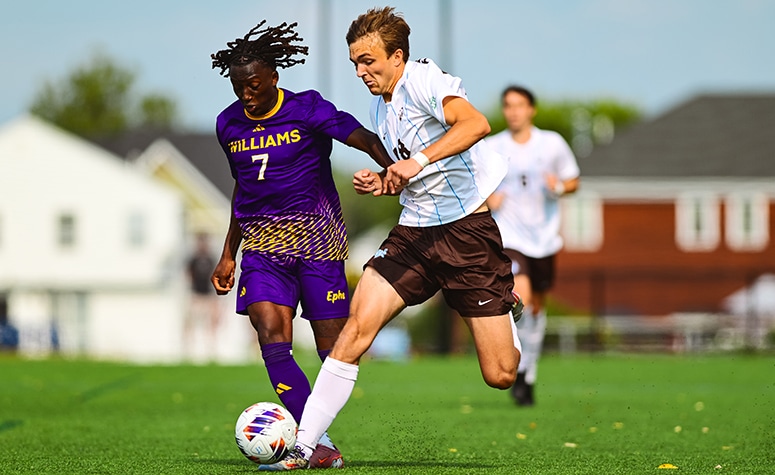 Tufts forward Xavier Canfin dribbles past Williams midfielder Mohamed Keussom. (Tufts Athletics)